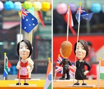 中新網(wǎng)11月12日電 據(jù)外媒報(bào)道,G20峰會(huì)正在韓國(guó)首爾舉行,當(dāng)?shù)厍逑◤V場(chǎng)上特地展出了參加G20峰會(huì)領(lǐng)導(dǎo)人的小型人像,誰(shuí)知卻鬧出“烏龍”:代表澳大利亞總理吉拉德的人像穿上了一身傳統(tǒng)的奧地利服裝——紅白相間的縐摺連衣裙,還帶著粉紅的圍裙,猶如電影《音樂(lè)之聲》中的造型。后來(lái)韓國(guó)方面意識(shí)到了錯(cuò)誤很快更換了衣服。