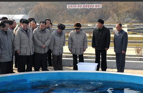 在視察位于朝鮮黃海南道的龍沿(音)養(yǎng)魚場(chǎng)時(shí),金正日指出,朝鮮三面環(huán)海,海水資源豐富,各個(gè)位于海邊的單位都應(yīng)該學(xué)習(xí)這家養(yǎng)魚場(chǎng)的成功經(jīng)驗(yàn),大力發(fā)展養(yǎng)魚事業(yè),為改善人民生活做出貢獻(xiàn)。(宋偉鋼)