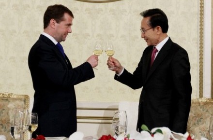俄韓兩國經(jīng)濟互動近年來大幅改善,尤其是在高技術(shù)交流領(lǐng)域。韓國貿(mào)易協(xié)會最新數(shù)據(jù)顯示,2010年前9個月雙邊貿(mào)易達到124億美元,較2009年全年增加兩成。而梅德韋杰夫則預(yù)估,俄韓雙邊貿(mào)易量將突破170億美元。