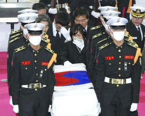27日上午,兩名陣亡士兵的遺體告別儀式在城南市的一家軍隊(duì)醫(yī)院內(nèi)舉行。包括韓國(guó)總理金滉植、軍方高級(jí)官員和陣亡士兵家屬等數(shù)百人出席儀式。