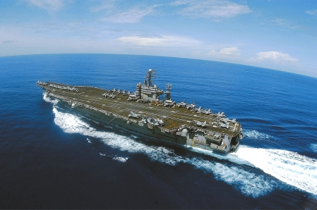 “卡爾·文森”號是美國十艘核動力航母之一。由該航母領銜的航母編隊號稱美軍“第一航母戰(zhàn)斗群”。除了“卡爾·文森”號航母,戰(zhàn)斗群還包括“邦克山”號巡洋艦、“斯托克代爾”號驅逐艦、“格里德利”號驅逐艦以及第17航母艦載飛行聯(lián)隊。