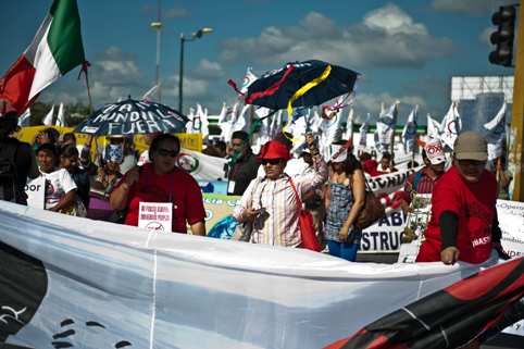 主辦方稱當(dāng)天有數(shù)千人參加了示威游行活動(dòng)。然而由于此次游行在距離會(huì)場(chǎng)幾十公里外的坎昆城舉行,因而對(duì)會(huì)議本身的影響很小。墨西哥警方也增派了大量警力鎮(zhèn)守,現(xiàn)場(chǎng)秩序比較穩(wěn)定,民眾和警察之間沒有發(fā)生沖突。