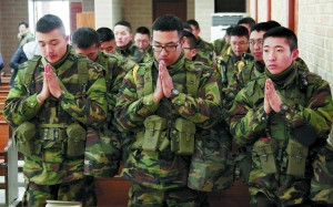 25日,駐扎在延坪島的韓軍士兵為圣誕節(jié)祈禱。