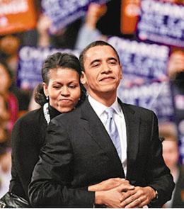 中新網(wǎng)1月16日電 美國民主黨總統(tǒng)選舉提名戰(zhàn)越演越烈,兩大熱門希拉里和奧巴馬唇槍舌劍,前總統(tǒng)克林頓為幫妻子一把,諷刺奧巴馬急速冒升是“神話”,一直在丈夫奧巴馬身后默默助選的米歇爾首度開腔反擊,稱丈夫有條件當(dāng)總統(tǒng)并非因其膚色,“而是其能力與始終如一的性格”。據(jù)香港《文匯報(bào)》報(bào)道,希拉里和奧巴馬各有“賢內(nèi)助”,但有分析認(rèn)為,與希拉里和克林頓問題多多的婚姻相比,奧巴馬和米歇爾的婚姻健康且穩(wěn)定,顯然是他競選的優(yōu)勢。
