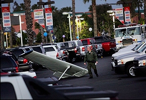 這起事故是發(fā)生在洛杉磯近郊的科洛納(Corona)市,兩家自用小型飛機在空中相撞后,其中一架飛機墜落到一個停車場,除了兩架飛機上的各2名駕駛和2名乘客人共4人之外,墜落的飛機殘骸直接撞擊到1輛停在停車場上的汽車,結果車上的1人喪生。