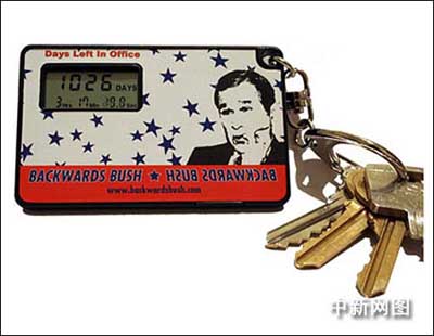 紐約市的文斯·蓬佐在布什連任后不久就開(kāi)始銷(xiāo)售倒計(jì)時(shí)鑰匙鏈。他在名為“倒退的布什”(backwards bush)的網(wǎng)站上賣(mài)出了12.5萬(wàn)個(gè)鑰匙鏈,他還在網(wǎng)上銷(xiāo)售顯示布什任期剩余時(shí)間的座鐘和掛鐘。