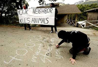 據(jù)悉,動物保護(hù)主義者目前越來越流行借用“反墮胎”游行慣用的戰(zhàn)略:到家門口去抗議。