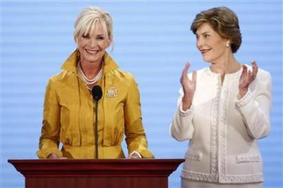 據(jù)美國媒體9月2日報道,第一夫人勞拉·布什和美國共和黨總統(tǒng)候選人麥凱恩的妻子辛迪成為共和黨全國代表大會首日的主角,她們主持了為“古斯塔夫”颶風受害者籌集款項的活動。共和黨全國代表大會9月1日在明尼蘇達州首府圣保羅市開幕。
