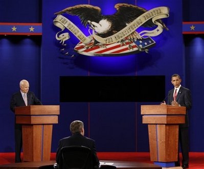 辯論開始,奧巴馬指責麥凱恩支持布什政府七千億大規(guī)模救市計劃。奧巴馬稱,美國目前正在遭遇的經濟危機顯示了共和黨8年政策的失敗。