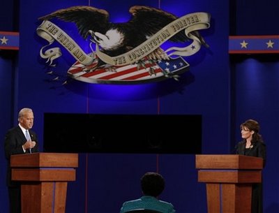 中新網(wǎng)10月3日電 綜合報(bào)道,當(dāng)?shù)貢r(shí)間2日,美國副總統(tǒng)候選人辯論在密蘇里州展開。共和黨副總統(tǒng)候選人佩林如何應(yīng)對(duì)老練的對(duì)手民主黨副總統(tǒng)候選人拜登,成關(guān)注焦點(diǎn)。