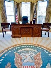寫字臺在總統(tǒng)“橢圓形”辦公室內(nèi),寫字臺所使用的木材來自英國皇家海軍的“堅決號”軍艦?夏岬峡偨y(tǒng)也曾使用過這張寫字臺。