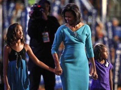奧巴馬和夫人米歇爾上周前往白宮與布什和第一夫人勞拉見面時,一對女兒并沒有同行。在勞拉的邀請下,7歲的薩莎和10歲的瑪利亞周二在母親和祖母陪同下,進入白宮大開眼界。