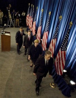 報道稱,在奧巴馬宣布經(jīng)濟團隊的發(fā)布會上,很多記者發(fā)現(xiàn),無論自己的手舉多久,都不會被叫到,因為只有三家通訊社和三家報社的記者被允許提問。有細心的人統(tǒng)計了一下,只有美聯(lián)社和路透社在11月7日和11月24日的兩次發(fā)布會上都得到提問機會,《紐約時報》在第一次會議上得到機會發(fā)問,《華爾街日報》和《華盛頓郵報》則在第二次發(fā)布會上被允許發(fā)問。另外,按照白宮安排,美聯(lián)社在兩次發(fā)布會上都得以首先提問。