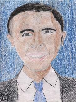 美國華盛頓一家教育機(jī)構(gòu)近日組織了一場別開生面的畫總統(tǒng)肖像大賽,數(shù)萬名年齡在5-12歲的孩子參加了比賽。剛剛當(dāng)選總統(tǒng)的奧巴馬人氣最高,畫他的孩子人數(shù)最多。而一位小選手畫的布什總統(tǒng)的肖像給評委留下的印象最深刻。