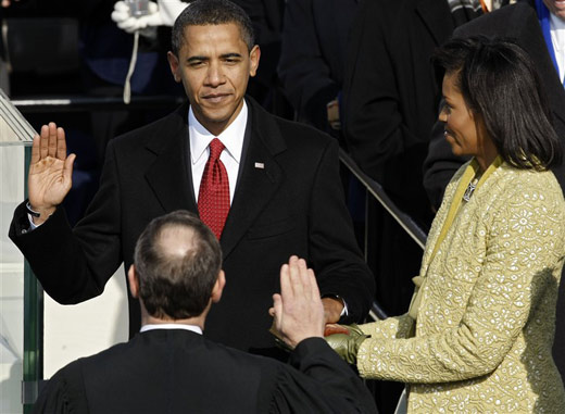 中新網1月21日電 當地時間1月20日上午12點05分(北京時間21日凌晨1點05分),總統(tǒng)奧巴馬手按林肯當年宣誓時所用的《圣經》宣誓就職,美國最高法院首席大法官約翰•羅伯茨在一旁公正。隨后,奧巴馬發(fā)表就職演說。
