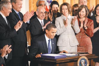 中新網(wǎng)2月6日電 據(jù)臺灣《聯(lián)合報(bào)》報(bào)道,美國眾院4日表決擴(kuò)大“州兒童醫(yī)保計(jì)劃”(SCHIP)法案,結(jié)果以290票對135票的壓倒性比數(shù)通過,奧巴馬總統(tǒng)隨即在白宮簽署使其生效,并稱之為邁向?qū)崿F(xiàn)他“全民醫(yī)!备傔x承諾的第一步。
