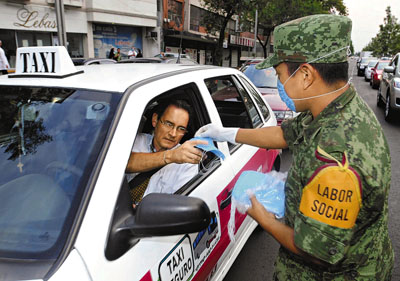 墨西哥城前日起口罩銷情突然暢旺,口罩迅即賣清,衛(wèi)生當局則派員到國際機場、地鐵站和巴士站派發(fā)口罩。墨城當局決定學校停課,610萬學生留家。市內一切由國家和市政府舉辦的文化活動暫停。