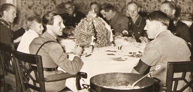 這份文件還記錄稱,更加令人感到驚奇的是,在進(jìn)餐時(shí)的談話中,希特勒的語(yǔ)氣并不像他在公共場(chǎng)合演講時(shí)那樣略帶沙啞的“歇斯底里”,而是用“標(biāo)準(zhǔn)的男中音”。對(duì)于女性,希特勒總會(huì)表現(xiàn)出一種極其自然的殷勤與真誠(chéng)。他那帶有“古老奧地利”口音的殷勤和文雅,給他的言行舉止增添了一種不可抗拒的魅力。他對(duì)在他手下工作的女性總是十分尊重,而且沒(méi)有任何偏見(jiàn)。當(dāng)然他也要求手下的工作人員專心致志并且徹底犧牲個(gè)人的自由。希特勒在追求女性方面是一個(gè)極其糟糕的心理學(xué)家,因?yàn)樗旧砭褪且粋(gè)完美的喜劇演員,很難分辨哪是本性哪是偽裝。所有接近他的人,尤其是女人總是把自己最美的一面展示出來(lái),而希特勒對(duì)她們表現(xiàn)出來(lái)的殷勤和虛偽總是信以為真。他明顯偏愛(ài)他的一名女秘書(shū),這位秘書(shū)非常懂得滿足他的虛榮心。她在場(chǎng)的時(shí)候,希特勒總是會(huì)露出愉快的笑容,