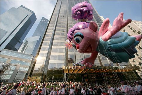 今年有11個大氣球加入游行,其中包括在天上飄的凱蒂貓(見圖),吸引現(xiàn)場所有人的目光,多達800名小丑和11支樂隊,以及2000名拉拉隊員和舞者,將整個游行氣氛推向高潮。 一位紐約市民幽默的說:“我喜歡的是最后會出現(xiàn)的耶誕老人,因為這樣我們可以趕快離開,然后回家開始吃火雞!”
