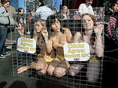 保護(hù)動(dòng)物組織成員澳洲街頭裸體抵制肯德基(圖)
