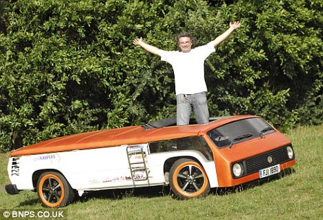英國(guó)人安迪·桑德斯和三個(gè)朋友用了3天時(shí)間,將一輛高2.4米的大眾轎車改裝成了世界上最矮的露營(yíng)巴士——高度還不到1米。