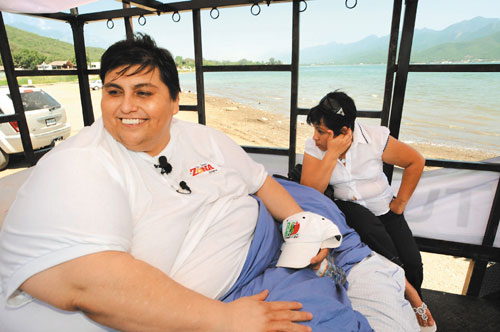 中新網(wǎng)8月12日電 綜合報(bào)道,重達(dá)310公斤的墨西哥超級(jí)胖子烏里韋10日在女友陪伴下,搭乘特制拖拉貨車,到蒙特雷一座湖邊賞景。