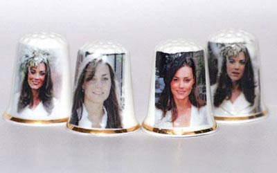 總部設在英國的一家中國頂針制造商的設計人員近日設計出一套以凱特為主題的頂針。每個頂針上都印有凱特的笑臉,而且每個頂針上的圖案都不同:凱特戴著不同款式的帽子。由于圖案有所區(qū)別,更增加了這套頂針的收藏價值。目前每套頂針的售價是4.40英鎊。