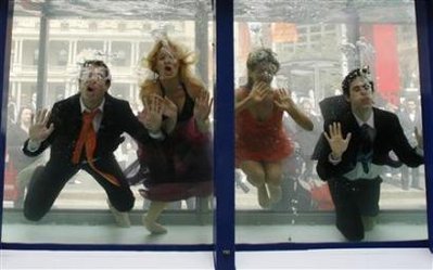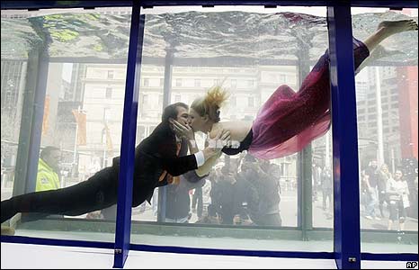 中新網(wǎng)9月11日電 綜合報(bào)道,澳大利亞的潮流人士又為時尚推陳出新了。10日,以時尚的名義,悉尼環(huán)形碼頭的一個大水槽里上演了別具一格的時裝秀,澳大利亞電視明星和模特在水中拍攝時裝照,盡管水下的姿態(tài)有所失控,頭發(fā)也翻飛,但仍然吸引了眾人駐足欣賞。
