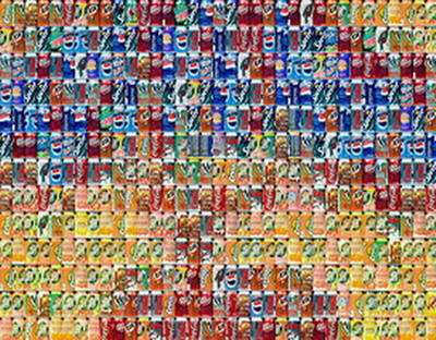 該幅作品中,他使用了10萬6千個易拉罐,這一數(shù)目正好是美國每30秒內(nèi)使用的易拉罐數(shù)量。
