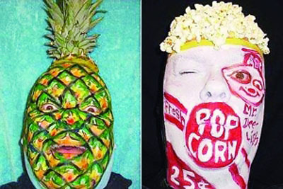 據(jù)報(bào)道,從今年3月開始,詹姆斯每天都喜歡用油彩往自己臉上畫一幅不同的畫,這些畫都畫得非常逼真。當(dāng)他往臉上畫一個(gè)菠蘿時(shí),很多人乍一看還真以為他腦袋上長(zhǎng)出了一個(gè)菠蘿。詹姆斯稱,他是看到有些人每天都為自己拍攝一張照片后,才有了這個(gè)想法的,“臉色天天變,那將是一件多么有趣的事!