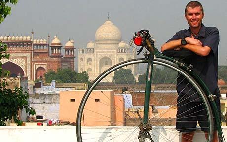 英國一男子日前使用一輛前輪大后輪小的自行車,在兩年半的時(shí)間里成功環(huán)繞地球35200公里,途徑世界上4個(gè)大洲23個(gè)國家。