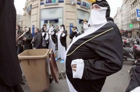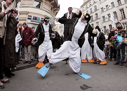 巴黎示威者扮成企鵝抗議氣候變化會(huì)議召開(kāi)