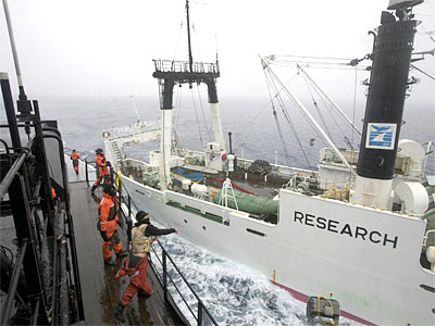 日捕鯨船遭保護(hù)組織投“臭彈”