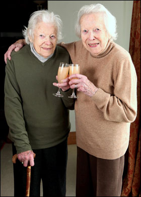 據(jù)英國《太陽報》12月31日報道,這對雙胞胎姐妹出生在1908年1月1日,出生時間間隔半小時,自她們出生以來,她們基本沒怎么離別過。