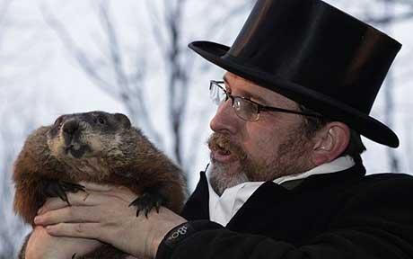 今年的2月2日,13000名觀眾聚在在賓夕法尼亞州的小鎮(zhèn)旁蘇托尼(Punxsutawney)觀察一只名叫“菲爾”的土拔鼠的行為!胺茽枴笔枪俜街付ǖ耐涟问髿庀箢A(yù)測(cè)員,2月2日早晨,“菲爾”被工作人員弄出洞,面對(duì)眾人和媒體,尋找自己的影子,然后將預(yù)測(cè)結(jié)果告訴鎮(zhèn)上帶高帽的老人比爾·庫(kù)柏,再由他向大家宣布預(yù)測(cè)結(jié)果。據(jù)說(shuō),庫(kù)柏是世界上唯一一個(gè)懂土拔鼠語(yǔ)言的人。這一天天氣晴好,土拔鼠“菲爾”看到了自己的影子,那么預(yù)示著美國(guó)的冬天還要持續(xù)6個(gè)星期。根據(jù)旁蘇托尼土拔鼠俱樂(lè)部的記載,自1887年起,菲爾看到過(guò)自己的影子達(dá)97次,沒(méi)看到的有15次,有9年沒(méi)有記錄。這個(gè)小鎮(zhèn)今年吸引了來(lái)自日本、冰島和埃及的游客,小鎮(zhèn)聲稱菲爾的預(yù)測(cè)從來(lái)就沒(méi)有失誤過(guò)。