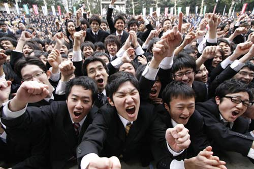 當天,約3000名畢業(yè)生聚集在這里,一同參加了這場別開生面的求職誓師大會,通過這一方式增強信心,鼓舞士氣,希望能在當前不景氣的經濟困境中找到立足之地。