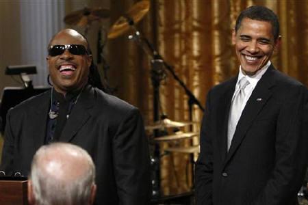 中新網(wǎng)2月26日電 據(jù)路透社報道,美國總統(tǒng)奧巴馬夫婦日前在白宮為黑人歌手汪德(Stevie Wonder)舉辦音樂會并頒獎,稱是汪德的音樂撮合了他們夫婦。