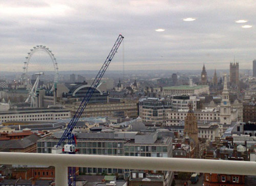今年40歲的德里克-伯登(Derek Burden)在倫敦西區(qū)的科芬園的16層高樓處發(fā)現(xiàn)令人驚異的UFO景象,拍攝時間是早上8點30分。但是伯登只用手機拍攝了一張照片,這件事發(fā)生在幾天前,當(dāng)時他的妻子莎拉注意到厚云層的太空中隱約出現(xiàn)了幾個特殊形狀的飛行物,伯登說:“當(dāng)時我正在等即將送來的一些材料,我便忙中偷閑去陽臺喝杯茶,依據(jù)妻子所描述的不明飛行物,我在16層樓拍攝起來十分方便!彼指出,這4個UFO釋放的光線并不是任何典型的光線折射,并證實在拍攝時身旁并沒有任何特定光源進行偽造拍攝。