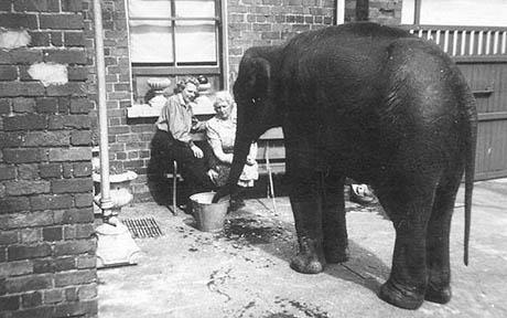二戰(zhàn)中,貝爾法斯特當(dāng)?shù)鼐鞛榱朔乐罐Z炸造成動(dòng)物逃跑傷人,共槍殺了23只動(dòng)物,包括一只老虎、一只黑熊、一只猞猁、一只鬣狗、兩只北極熊和六只狼。而這只大象幸運(yùn)的被一位婦女發(fā)現(xiàn),并被藏于婦女家中得以逃生。