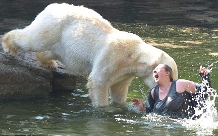 中新網(wǎng)4月12日電 據(jù)英國(guó)《每日郵報(bào)》報(bào)道,日前,一名德國(guó)女子突然跳進(jìn)北極熊館內(nèi)熊進(jìn)食的區(qū)域,4頭北極熊中的一頭游近她并襲擊她。她的手、臂、腳和背部被熊嚴(yán)重咬傷,但沒有生命危險(xiǎn)。