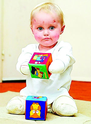 1歲的堅(jiān)強(qiáng) 患腦膜炎失去四肢