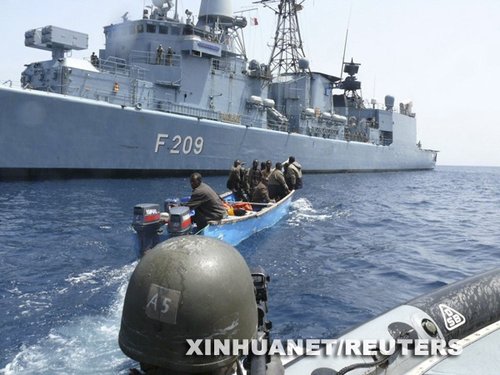 德國防部發(fā)表聲明說,海軍驅(qū)逐艦“萊茵蘭—普法爾茨”號3日早些時候收到一艘德國商船緊急求救電話,說商船正遭到配備有反坦克火箭筒和機關(guān)槍等武器的海盜襲擊。