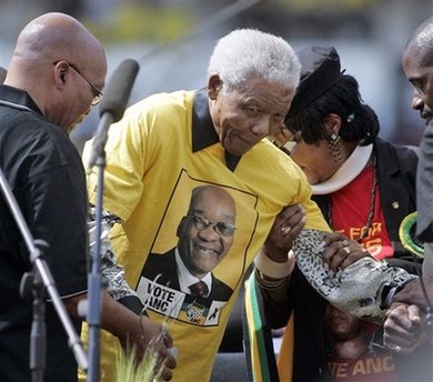 而曼德拉的到場(chǎng),提高了祖馬的競(jìng)選聲勢(shì)。曼德拉發(fā)表了提前錄制的講話。