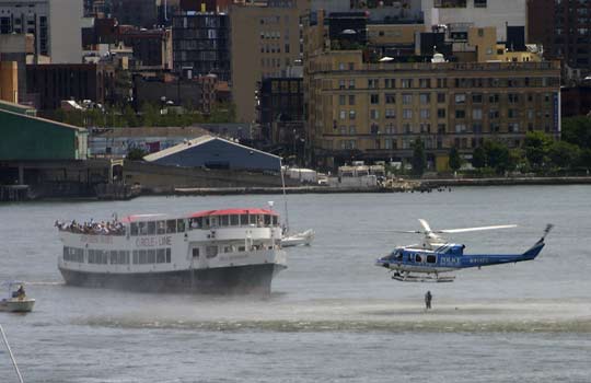 目前,紐約市和新澤新州的應(yīng)急救援機構(gòu)人員共同在哈德遜河中,努力營救失事飛機上的人員。