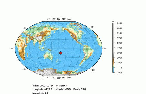 據中國地震臺網測定,北京時間9月30日01時48分,薩摩亞群島地區(qū)(南緯15.5,西經172.2) 發(fā)生8.0級地震,震源深度約33公里。