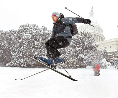 華盛頓地區(qū)刮起時速40英里的寒風(fēng),使白雪在空中亂飄,冷風(fēng)效應(yīng)更使氣溫降至約攝氏零下6度。氣象專家稱,華盛頓的大雪達40厘米,是自1932年以來12月的最大降雪量。美國總統(tǒng)奧巴馬前日凌晨乘專機從哥本哈根返回華盛頓,在抵達華盛頓市郊的安德魯斯空軍基地時遇上了大雪。由于天氣十分惡劣,奧巴馬改為乘坐專車返回白宮,而不是按慣例坐“海軍陸戰(zhàn)隊一號”直升機。紐約亦受暴風(fēng)雪吹襲,昨天早上積雪達28厘米,一班列車受風(fēng)雪影響中途停駛,150名乘客一度滯留車廂內(nèi)5小時。