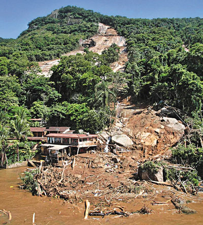 中新網(wǎng)1月3日電 巴西連日大雨,南部著名旅游島嶼安格拉杜斯雷斯元旦日凌晨發(fā)生山泥傾瀉,山腳下的小型豪華旅館Sankay被泥石流壓毀,最少19人死亡,仍有多人失蹤,相信死亡人數(shù)已多達40人。暫時未知道死傷者國籍。