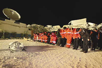 中國國際救援隊隊員于海地時間14日凌晨抵達聯(lián)海團總部大樓營救現(xiàn)場后,已夜以繼日地奮戰(zhàn)了幾十小時。