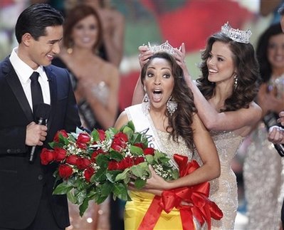 中新網(wǎng)1月31日電 據(jù)美聯(lián)社報道,當?shù)貢r間30日晚上,2010年度美國小姐大賽結(jié)束。來自弗吉尼亞州的卡梅隆(Caressa Cameron)贏得了2010年美國小姐稱號。