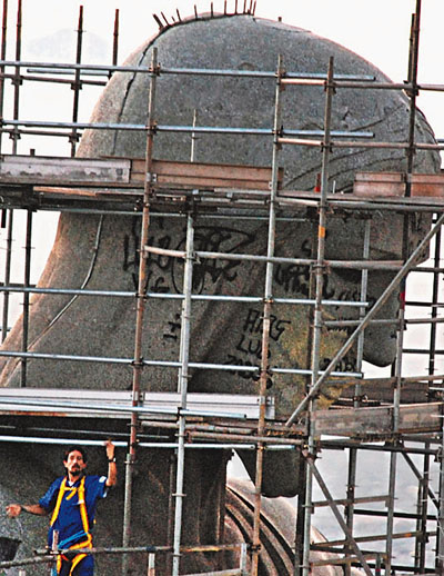 中新網(wǎng)4月18日電 據(jù)香港《文匯報(bào)》報(bào)道,巴西里約熱內(nèi)盧連日豪雨觸發(fā)泥石流,多處地方坍塌,當(dāng)局暫時(shí)關(guān)閉地標(biāo)耶穌山,在耶穌像周圍筑起棚架,為這個(gè)世界七大奇景之一進(jìn)行修葺。怎料,有人闖入用黑色噴漆在雕像頭、胸和手涂鴉,寫(xiě)上暗喻暴力和犯罪的字句,如“貓兒不在,老鼠出擊”等。